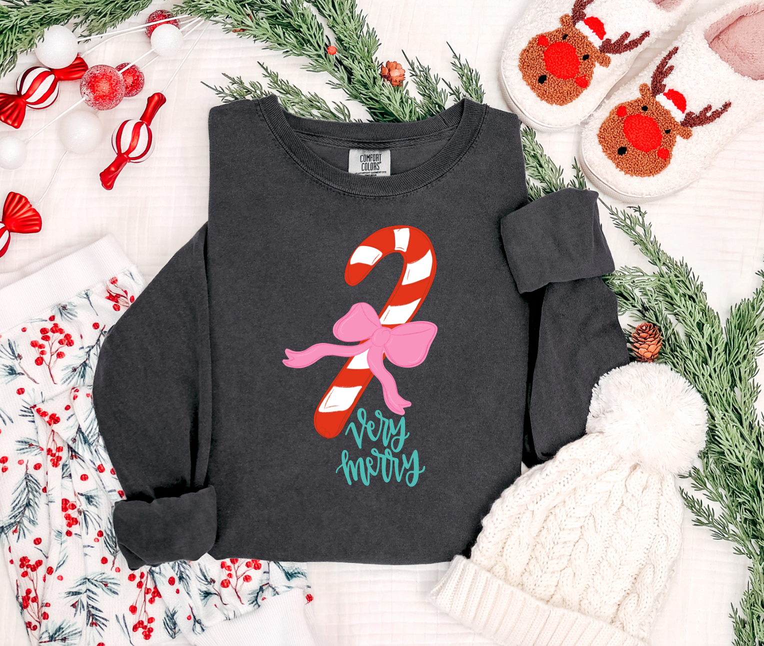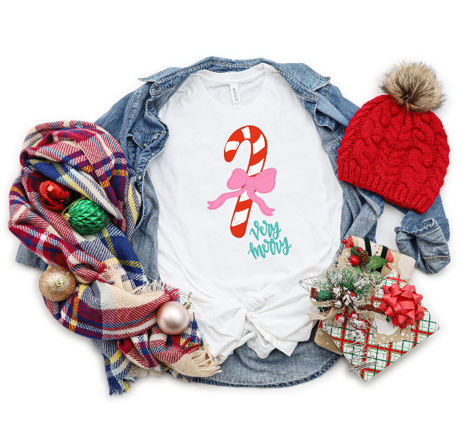 Festive, fun, and oh-so bright—our Very Merry Tee is made for the holiday magic makers! With candy cane stripes, a trendy bow accent, and cheerful pops of color, this design brings playful joy to every celebration.