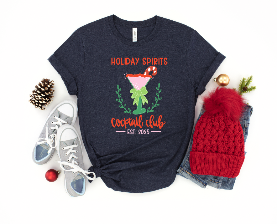 Get in the merry spirit this season with this adorable Holiday Cocktail Club t-shirt! This comfy Christmas shirt is perfect for any holiday outfit, makes an adorable holiday gift for t-shirt lovers, and can be worn for ANY holiday activity!