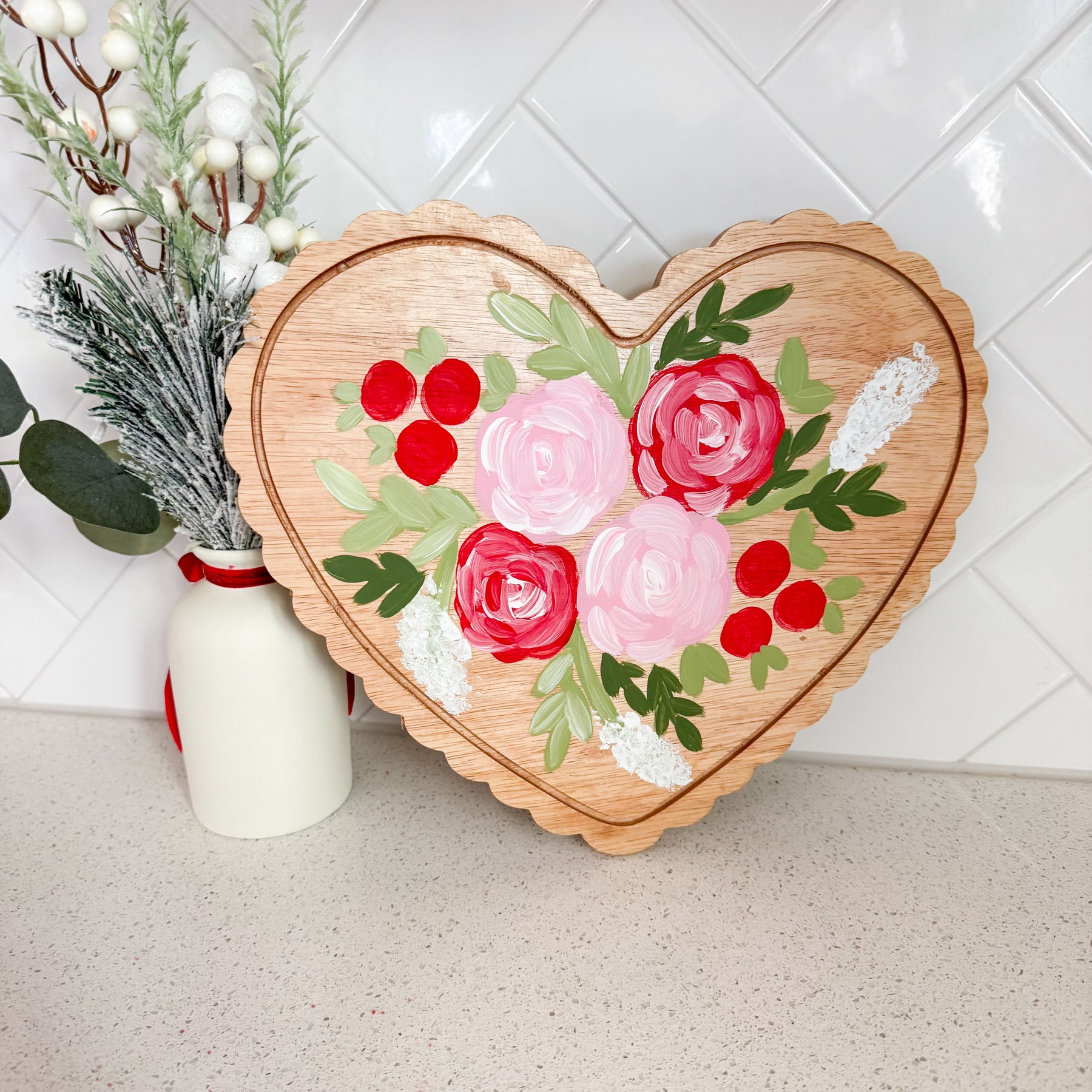 Sweet scalloped edges and delicate florals make this Scallop Heart Floral Wood Board a standout Valentine accent. Soft, romantic, and full of charm.