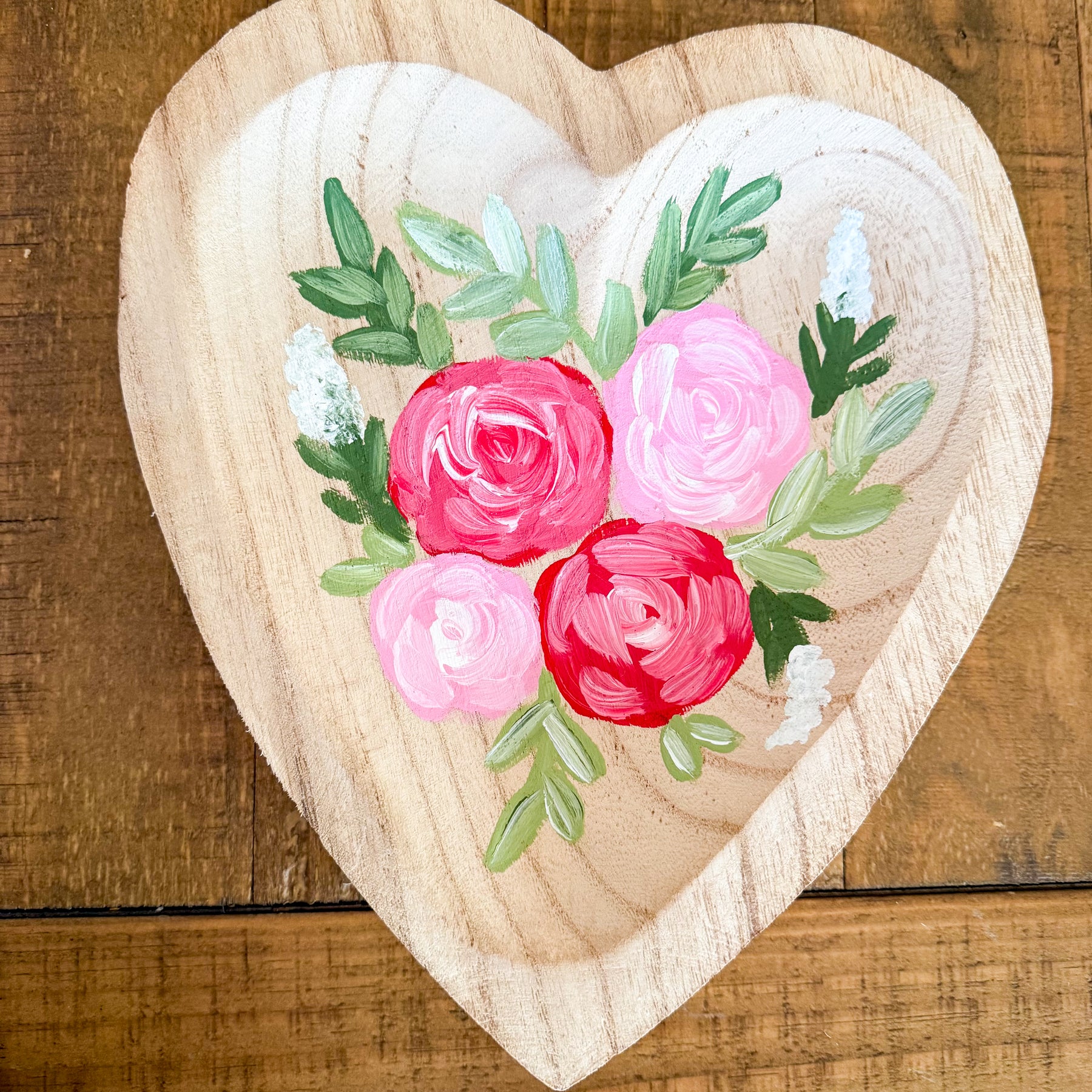 Soft florals and Valentine charm come together in our Floral Heart Wood Bowl. Featuring a beautifully painted floral heart, this bowl adds a romantic, feminine touch to your Valentine decorating.