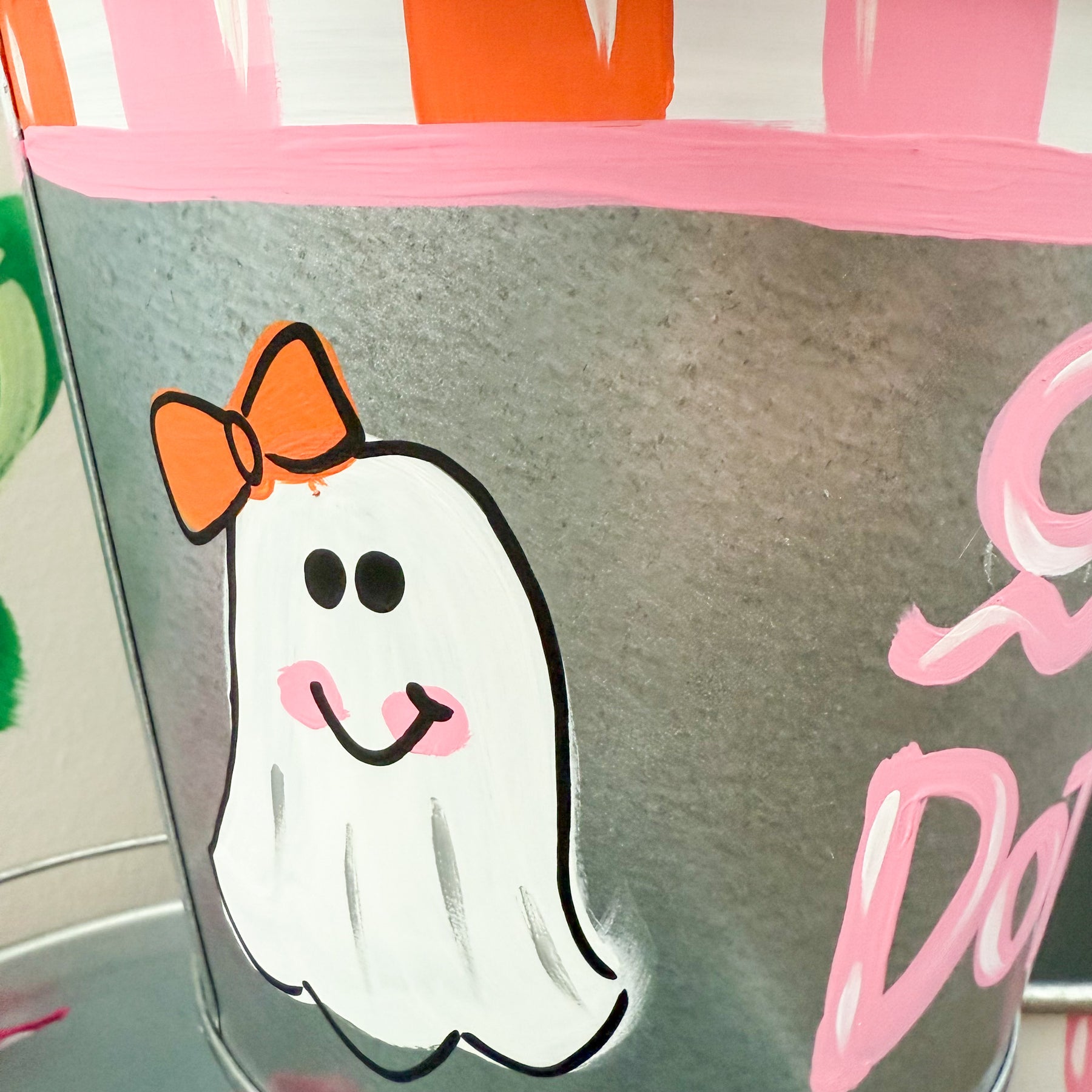 This adorable hand painted, boutique style Halloween bucket is perfect for all your fall activities!