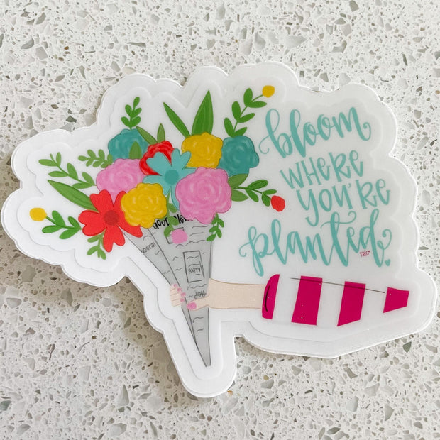 Our newest stickers are perfect reminders of what's most important!  These measure approximately 3 inches high. Great for laptops, planners, water bottles, and cars.  Vinyl is waterproof and high quality so it won't wear away!