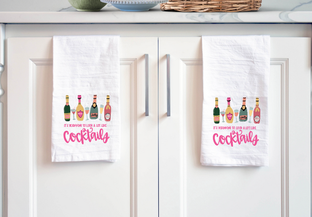 Add a little holiday flair to your kitchen with this festive Christmas tea towel! This holiday cocktail tea towel is perfect for any Christmas kitchen decor, makes an adorable Christmas gift for wine lover, a creative secret santa gift and is a fabulous treat for a hostess.