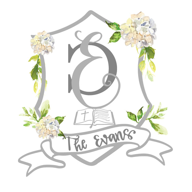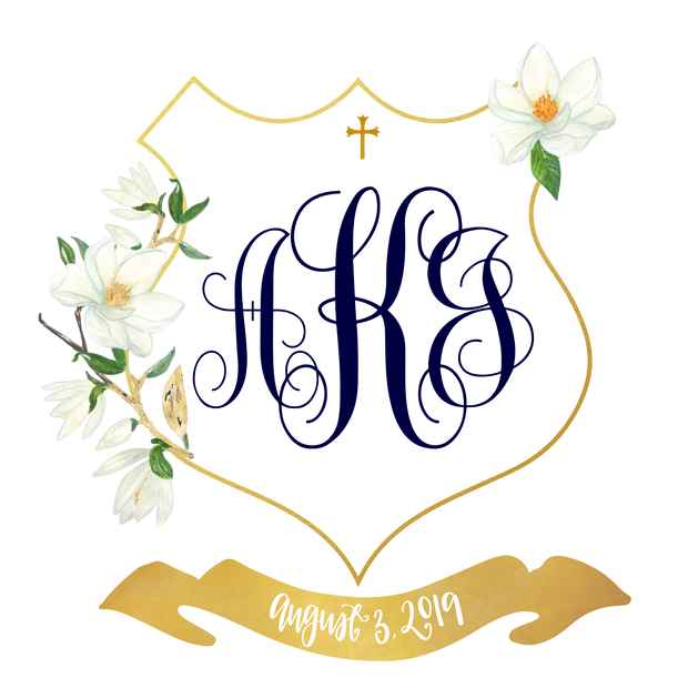 - Single letter - Use your married monogram (first letter of your last name) to help in transitioning the crest into a family crest! This option can be used on details post-wedding, once you are officially married.