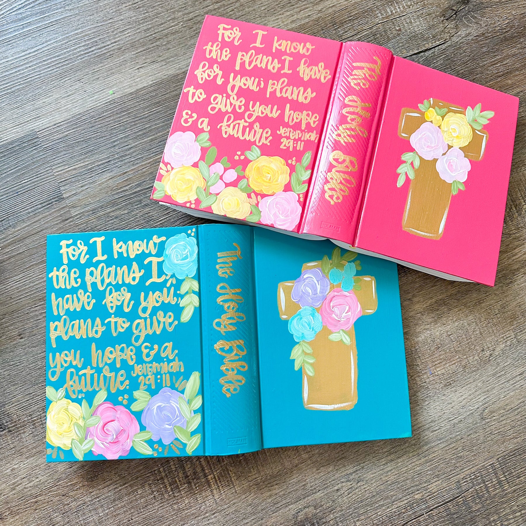 Make your quiet time even more meaningful with a one-of-a-kind, hand painted Bible. Each Bible is thoughtfully customized just for you; choose your favorite color palette, your favorite Bible verse, and let us create a keepsake that’s as beautiful as it is purposeful.