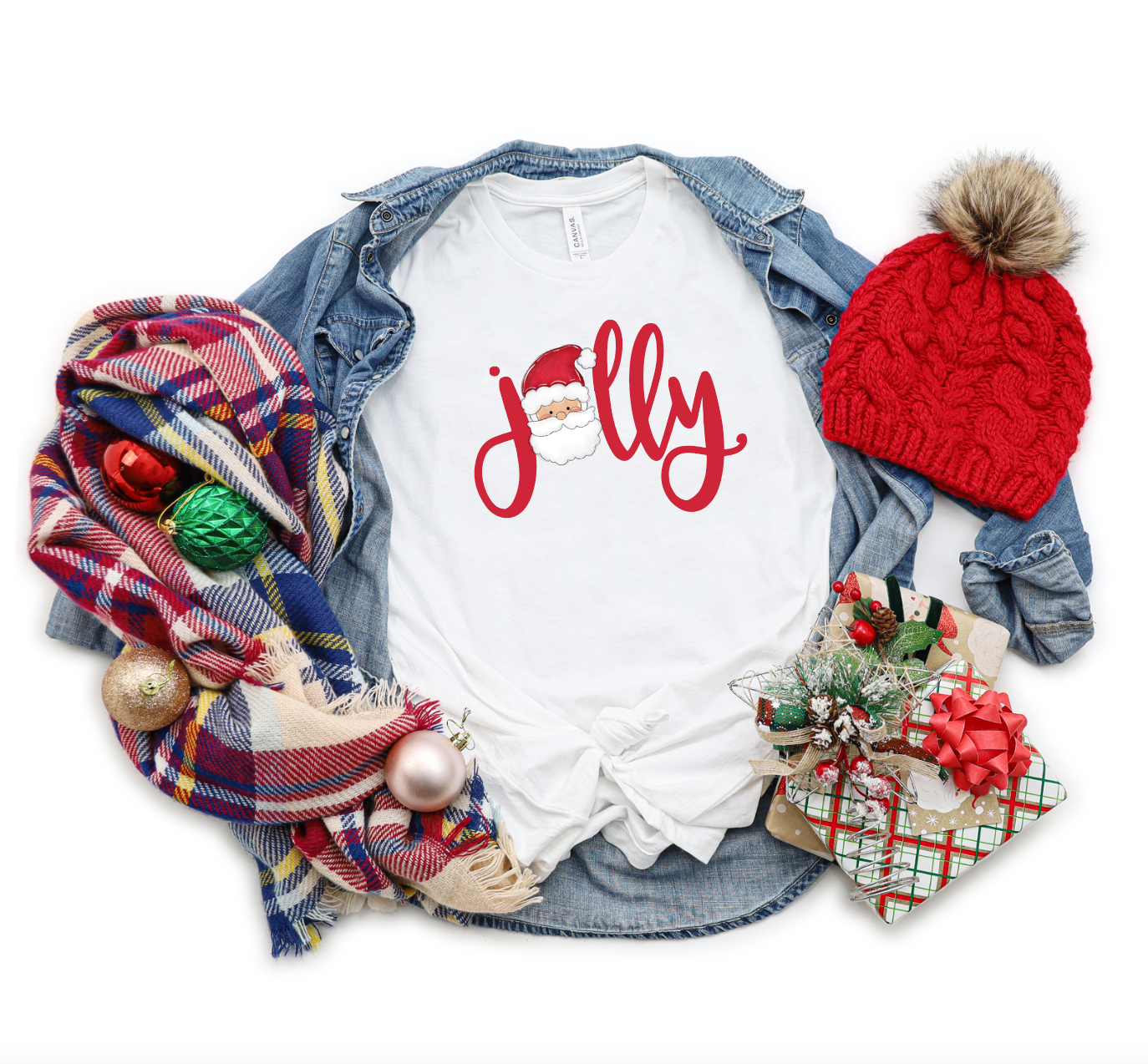 Bring on the holly and the jolly with our festive Jolly Santa Tee. Featuring bold, cheerful lettering with a jolly Santa face as the “O”, this design is playful, classic, and instantly puts you in the holiday spirit.