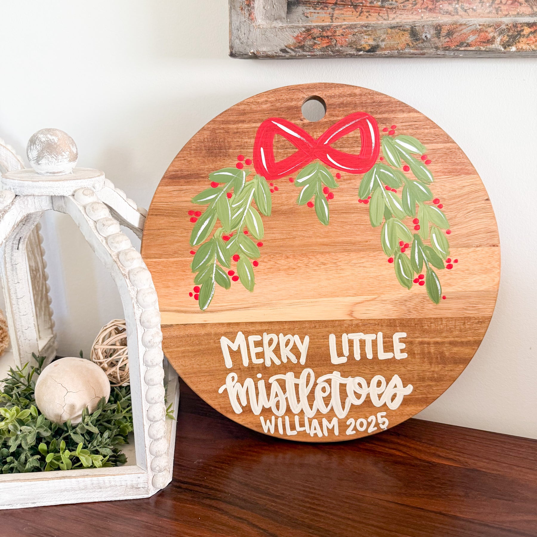 Hand-painted “Merry Little Mistletoes” design personalized with child’s name