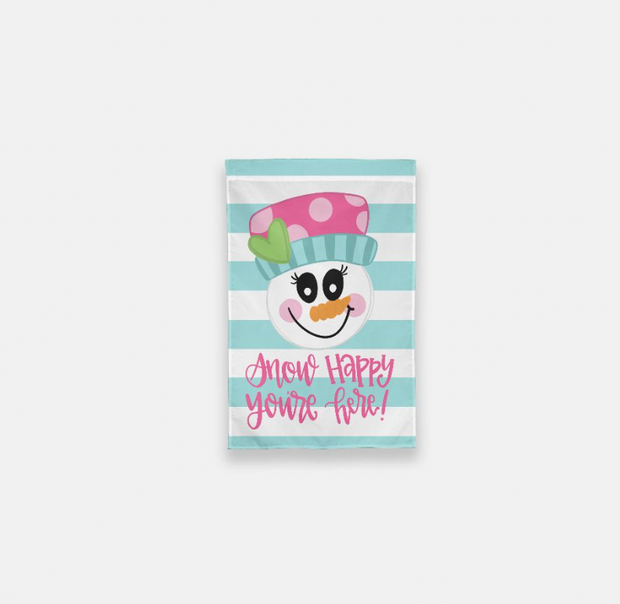 Celebrate the season with this festive garden flag! Featuring an adorable snowman and happy hand lettering, it's the perfect addition to your outdoor decor.