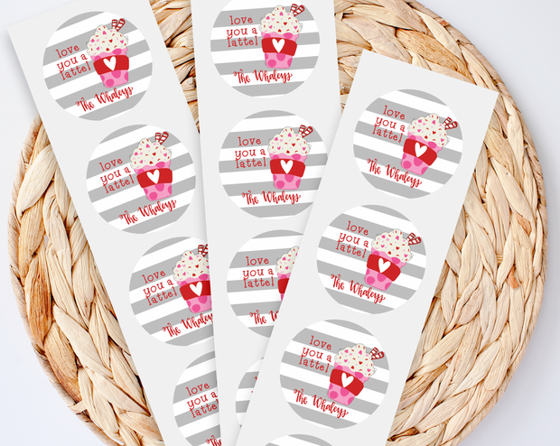 Love You a Latte Personalized Valentine Gift Label